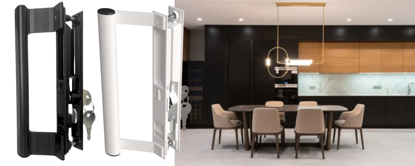 Sliding Glass Door Handle Set Round Tube with Lock-white